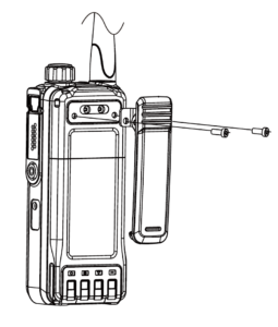 (バッテリーを外した状態でベルトクリップ本体を取り付け位置に合わせてネジを仮止めするとスムーズに取り付けができます。 その際本体裏面のバッテリー接続端子を気付付けないようご注意ください。)